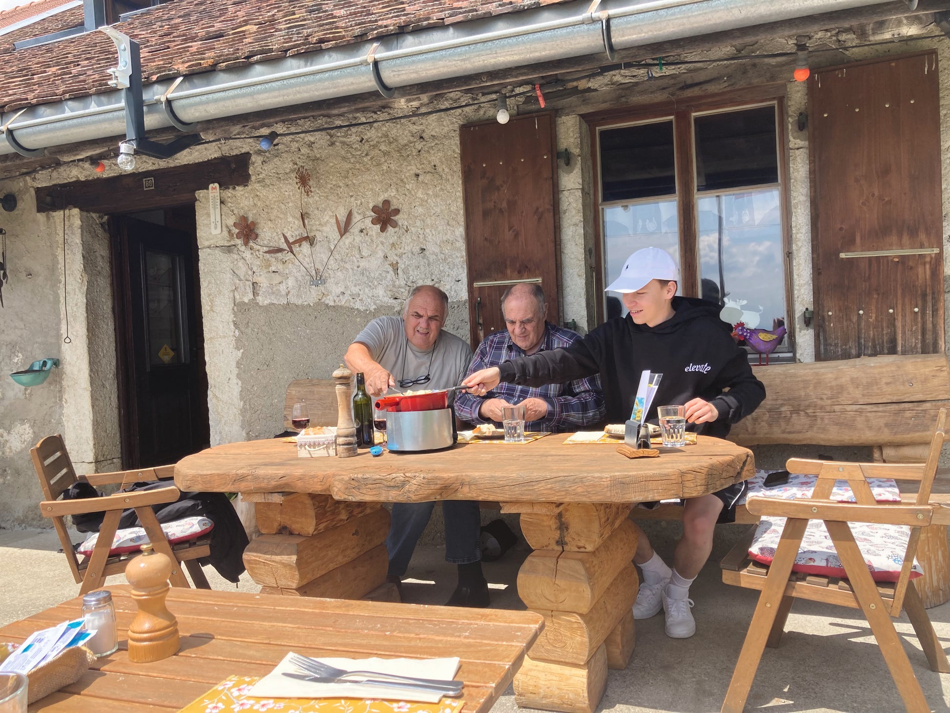 Hoch hinaus Die Gastgeber sind Freiburger, ihr Qualitätsanspruch ist hoch, so hoch wie die Bergerie oberhalb von Lamboing liegt. Autofahrer, die nicht schwindelfrei sind, lassen es lieber bleiben und gehen zu Fuss, denn schmal ist der Weg, der von brüchigem Felsen und tiefem Abgrund begrenzt wird. Was, wenn ein Auto entgegenkommt? Eben! Oben erst einmal angekommen, werden die Ausflügler mit Weitsicht, Panorama und einer stimmungsvollen Einkehr belohnt, in der die Gastgeber wunderbar kochen und Rösti, Beinschinken, Fondue und andere schöne Gerichte für Genussmenschen mit Appetit auftischen. Zu empfehlen sind auch die Weine von Chantal Ritter aus Le Landeron, die zum Freundschaftspreis ausgeschenkt werden. Das Ganze ist ein einmaliger Ort zum Sitzen bleiben, den Alpenblick gibt’s gratis dazu.