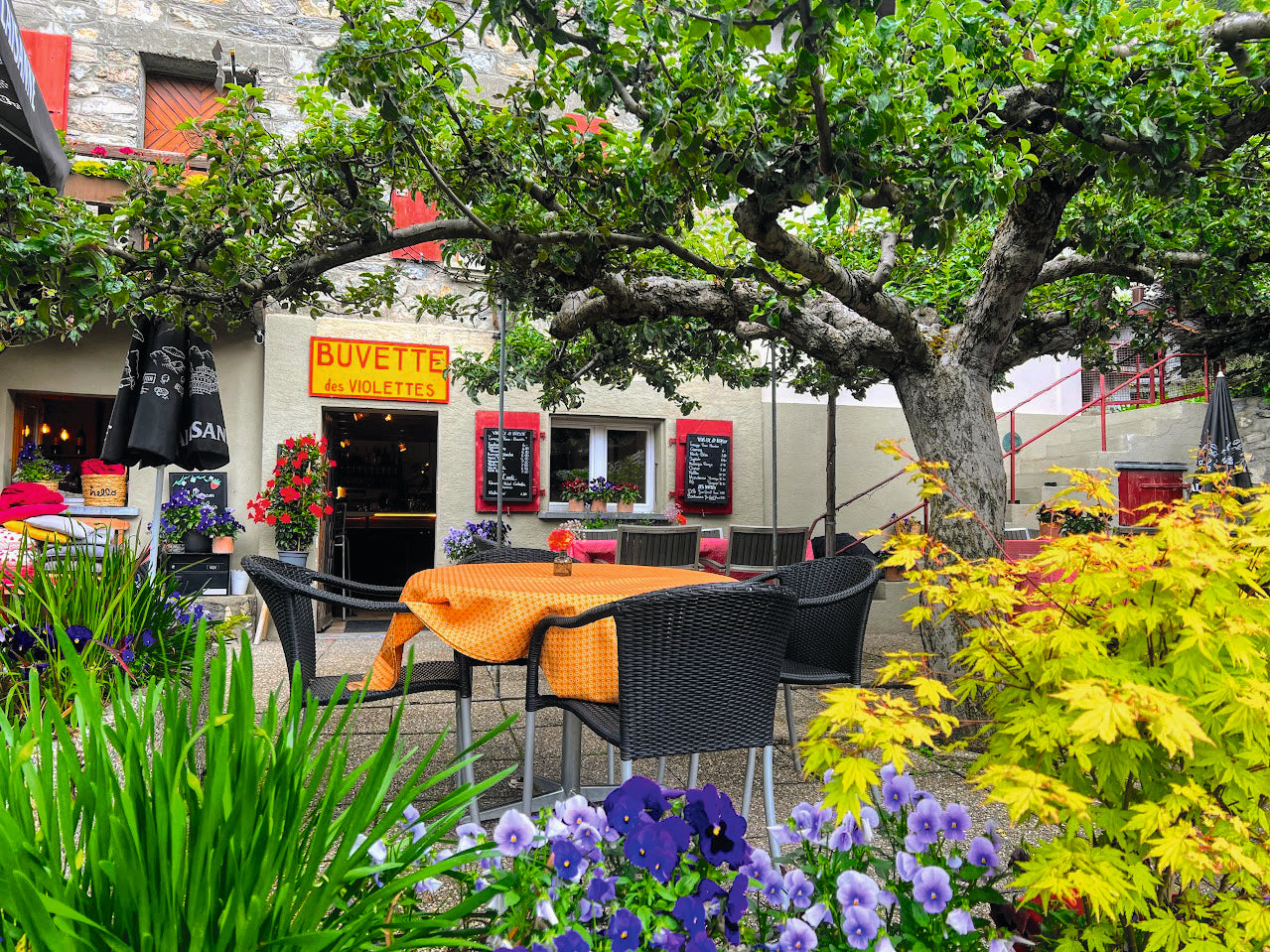 Auszeit Die Buvette ist ein kulinarischer Lebensraum, ein Sammelpunkt für entspannte Momentaufnahmen, mit gut aufgelegten Gastgebern, die eine unkomplizierte Küche pflegen, die dazu anregt, immer mal wieder vorbeizukommen. Als lockere Tafelrunde genehmigen wir uns zum Aperitif eine grosszügige Planchette Valaisanne und danach eine kleine Portion Tartare de boeuf, bevor wir uns eine Spezialität von Chamoson genehmigen. Kenèfle ist eine Mélange aus Knöpfle (Spätzle) und Gnocchi (je nach Rezept auch mit Kartoffelwürfel) die mit goldgelb gebratenen Zwiebeln und mit Käse von der Hausalp zugedeckt und im Ofen als Gratin vollendet wird. Dazu einige Weine (die Runde ist gross) aus Chamonson und jeder weltliche Zollstreit geht vergessen. Nach diesem opulenten Gelage hilft für den balsamischen Beistand ein hausgemachtes Granité vom Eisenkraut.