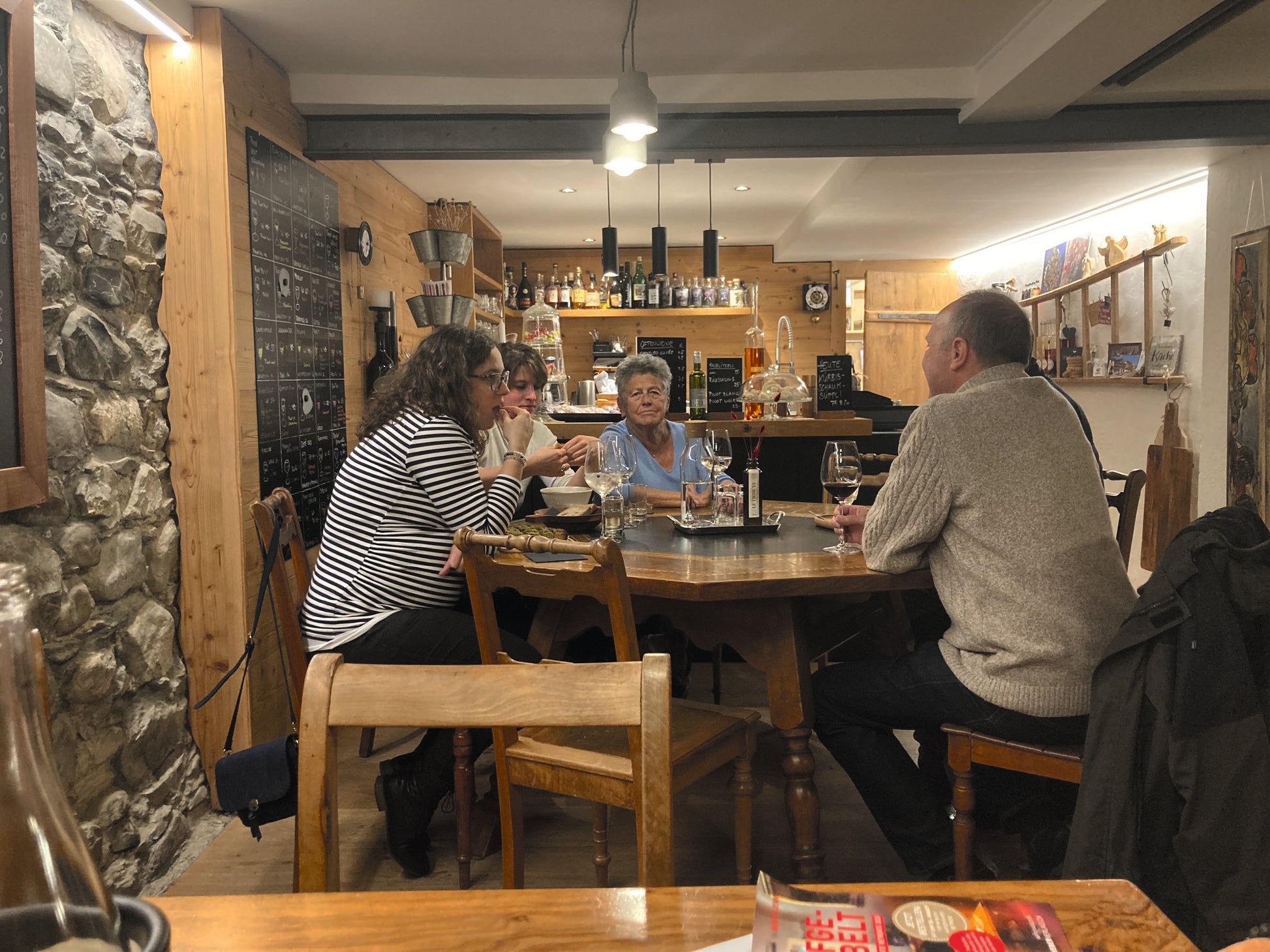 Unter Engeln Susanne Schmid hat mit Fingerspitzengefühl und viel Sinn fürs Machbare ein Kleinod geschaffen, das sich regelrecht zur stimmungsvollen Einkehr aufdrängt. Hier eine Runde unter Freunden oder mit Einheimischen zu palavern, sitzen zu bleiben und eine zweite Flasche nachzubestellen, hat was. Dazu einige regionale Trockenfleisch- und Käsespezialitäten, mehr braucht es nicht für eine unkomplizierte Auszeit vor dem Alltag, zumal das unter Denkmalschutz stehende Haus auch über eine stilvoll eingerichtete Ferienwohnung verfügt. Obwohl das Gebäude ein historischer Zeitzeuge ist, wird es im Haus nie laut, auch wenn es in der Weinstube stets glückselig zu und hergeht, wobei die leider nur am Donnerstag und Freitag ab 17 Uhr sowie am Samstag ab 15 Uhr offen hat.
