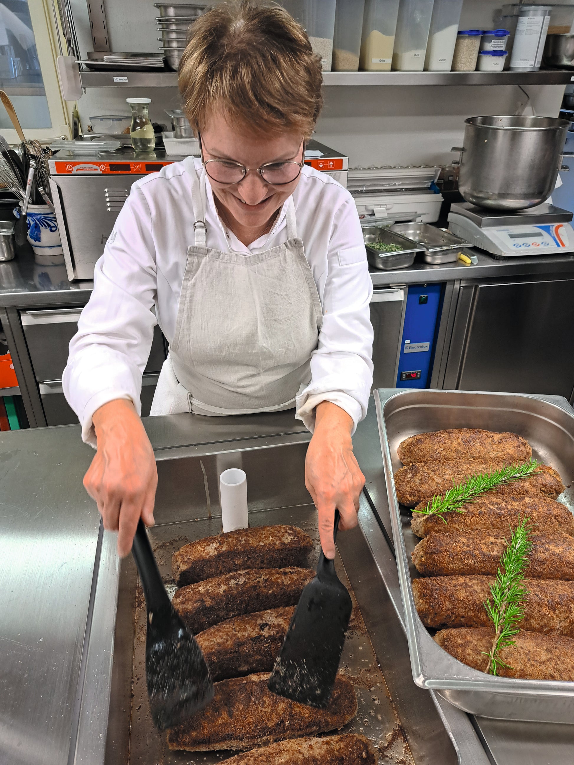 Kontinuität Der «Bären» ist ein mit Fingerspitzengefühl renovierter Landgasthof. Sehr wohl fühle ich mich hier in der Gaststube, und wenn es mit Freunden eine grössere Tafel wird, lockt für den Aperitif das Kellergewölbe. Esther Keller ist eine unaufgeregte Köchin, die Wert auf luftig-leichte Gerichte legt und vorzüglich Glaces produziert. Sie richtet die Speisen sorgfältig an, kocht regional und saisonal und stellt das Grundprodukt ohne Firlefanz in den Mittelpunkt. Steht der Hackbraten auf dem Programm, muss ich nicht lange überlegen, sondern ihn gleich bestellen. Der Service unter der Leitung von Patron Geri Keller ist herzlich und zuvorkommend, so das schnell einmal Frischlinge zu Stammgästen mutieren. Nicht verpassen sollte man, je nach Saison, die Weinsuppe, die Hettenschwiler Spargeln, das Gitzi oder die opulente Metzgete. Wer noch nicht genug hat, füllt sich zum Schluss seinen Einkaufskorb mit diversen lokalen Hausprodukten, die Esther Keller mit Liebe zum Detail produziert.